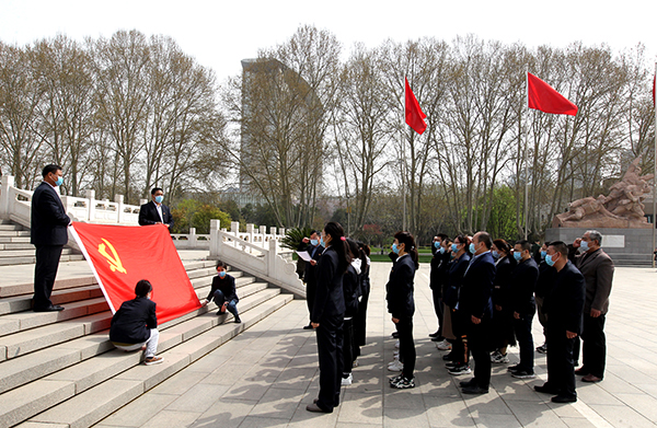 3月31日上午,在五分公司黨總支的組織下,機關(guān)第一、二黨支部在家黨員、團員青年、群眾共三十余人統(tǒng)一著裝,徒步來到華北軍區(qū)烈士陵園,開展“緬懷英烈 愛國教育”主題黨日活動。為了讓團員青年、群眾都受到教育,此次活動范圍擴大到了全體職工。在紀念碑前,全體職工向長眠在此的烈士們致默哀、三鞠躬,之后整齊列隊、緩步向烈士們獻上自己親自動手制作的小白花,隨后面向紀念碑,右手舉拳,在黨總支書記賈銀建領(lǐng)誓下,立足崗位鄭重宣誓。