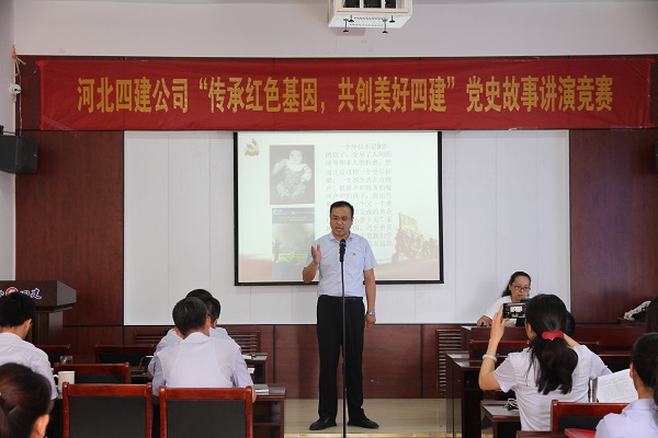 中國共產(chǎn)黨百年華誕激動人心。為共憶紅色歲月、傳承時代初心,6月28日下午,公司在四樓活動室舉行了“傳承紅色基因,共創(chuàng)美好四建”主題黨史故事講演競賽,經(jīng)層層選拔勝出的26名選手激情登臺。公司黨委書記、董事長董富強發(fā)表了熱情洋溢的致辭,黨委副書記、紀委書記、工會主席李懷生出席競賽。