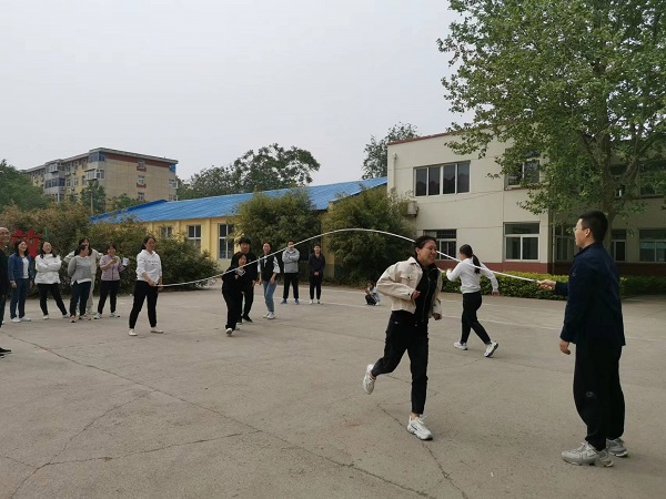 最后的集體跳繩分為2隊,每隊8人,其中2人搖繩,6人跳繩,跳繩隊員依次跳過,兩分鐘內(nèi)根據(jù)跳過次數(shù)的多的隊伍勝出。