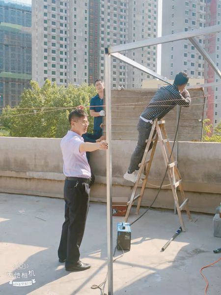 說干就干,立即行動。劉保國和左建華對樓頂平臺實(shí)地量測,記錄好尺寸。兩人一邊量著,一邊比劃著,對所需的材料做到心中有數(shù)。“采購材料的事兒,就交給我了?!痹O(shè)備材料科科長史永濤拿出電話就開始聯(lián)系起來。材料就位后,考慮到有些電焊的活兒需要專業(yè)的工人,劉保國趕緊聯(lián)系了一名電焊工。大家分工合作,你遞材料、我扶鋼管,你安裝、我綁線,邊干邊聊。30多度的高溫下,大家的額頭上直冒汗,但干勁兒絲毫沒減。防雨棚安裝完畢,新買的洗衣機(jī)放置到位,大家松了一口氣?!敖裉斓拇蠊こ探Y(jié)束了,趁著這次機(jī)會,咱們把宿舍的門窗都檢查一遍?!眲⒈f道,抬手擦了擦汗水,便拿起工具向宿舍走去。大家對宿舍的門窗逐一進(jìn)行檢查,對破洞的紗窗進(jìn)行了更換,對門上松動的把手進(jìn)行了維修。