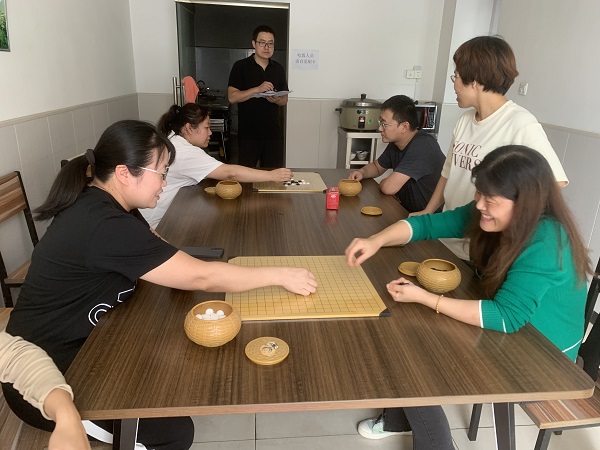 轉(zhuǎn)場來到“以棋會友,其樂無窮”的五子棋比賽現(xiàn)場,比賽在自由組合的七個小組之間進行,兩兩一組對弈,(。)經(jīng)過層層比拼,決出了比賽的獲勝者。對弈過程中選手每走一步都深思熟慮,慎之又慎。低頭看向棋盤,黑子白子交錯之中,仿佛有無數(shù)的機關(guān),橫向、縱向、斜向的棋子令人眼花繚亂?!皺M看成嶺側(cè)成峰”,這些棋子復雜的排列更加考驗了參賽者的觀察能力。大家相互切磋交流,提高了棋技,也增進了彼此間的感情。