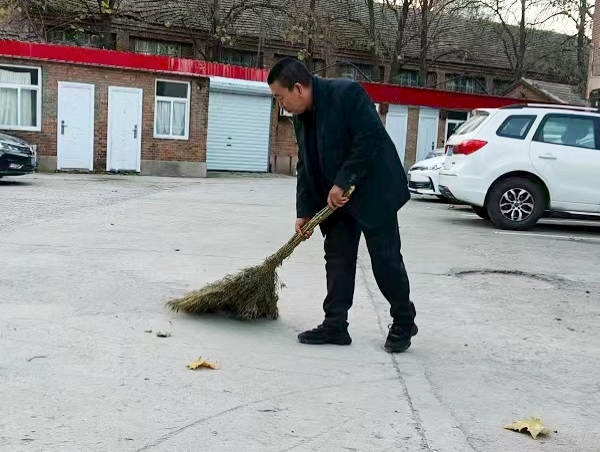 作為兼任分公司院內(nèi)五家單位的警衛(wèi),王亮沒把“守大門”當成簡單的值守,而是用“多走一步、多想一層”的主動,把院區(qū)安全與服務做得既扎實又貼心。夜班值守時,他更把“巡查”做成了“安全隱患排查”,仔細檢查門窗、消防器材及車輛停放。有次巡查,他注意到有車輛未關車窗,當即聯(lián)系了車主,確保安全。而每天清晨的打掃,更像是他對“家”的細致守護的延伸。每天六點天剛亮,多數(shù)同事還沒出門,他已經(jīng)扛著掃帚、拎著簸箕,在機關前后院忙活開了。落葉飄在花叢里,他就蹲下來一片一片撿;紙屑卡在磚縫里,他用小夾子慢慢夾出來,連墻角的雜草都要順手拔掉。“咱守著這院兒,不僅要保安全,更要讓大伙兒上班看見清亮的環(huán)境,心里敞亮?!蓖趿恋脑捳Z樸實無華。在他眼里,“警衛(wèi)”不只是一份工作,更是守護分公司“家”的責任,這份盡責與主動,正是“把院區(qū)當自家”最樸素的表達。