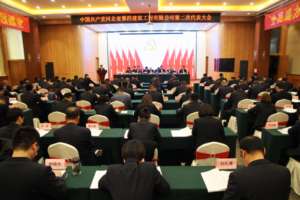 當(dāng)日,中國共產(chǎn)黨河北省第四建筑工程有限公司第二次代表大會在石家莊市利淳商務(wù)酒店勝利召開。在預(yù)備會之后,大會在莊嚴(yán)的《國歌》聲中隆重開幕,96名黨員代表齊聚一堂,凝聚思想共識,共商黨建良策,共謀發(fā)展大計(jì),共繪美好藍(lán)圖。集團(tuán)公司黨委書記、董事長、總經(jīng)理張?zhí)炱缴W臨會議并講話,集團(tuán)公司黨委辦公室主任、組織部部長張秋英、集團(tuán)公司紀(jì)委副書記、紀(jì)委辦公室主任、監(jiān)督檢查室主任張煜出席大會并全程指導(dǎo)。會議先后由公司黨委副書記、總經(jīng)理唐志強(qiáng),黨委副書記、紀(jì)委書記、工會主席李懷生主持。