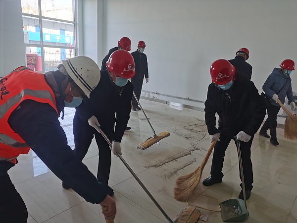 一到現(xiàn)場,黨員們就摩拳擦掌、躍躍欲試。項目經(jīng)理首先向?qū)O長虹一行簡單介紹了項目基本情況和現(xiàn)場安全注意事項后,省直工會的黨員們就戴上安全帽,直奔輔助工房三區(qū)。他們手持拖布、笤帚在一層室內(nèi)清理地板磚、整理雜物、倒運垃圾,干得熱火朝天。大家不顧室內(nèi)的灰塵,認真地清理著地面上的雜物、清掃著每個角落。經(jīng)過緊張工作,黨員們把三區(qū)一層房間和走廊打掃得干干凈凈,把裝飾材料、防水材料等雜物碼放得整齊有序?,F(xiàn)場工人看到黨員們不怕臟,不怕累的勞動,都紛紛稱贊。勞動結(jié)束,在業(yè)主的帶領(lǐng)下,孫長虹、李懷生等黨員參觀了已經(jīng)完工、正在試運行的制梗生產(chǎn)線。