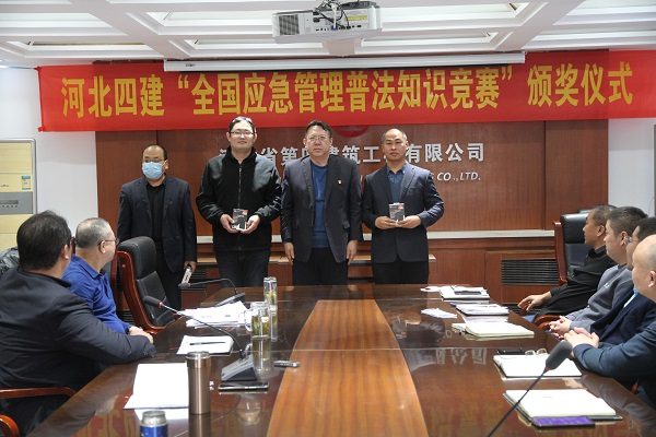 12月20日,公司“第三屆全國應(yīng)急管理知識普法競賽”頒獎儀式在三樓會議室舉行,14名取得省市區(qū)前百名成績的優(yōu)秀選手受到表彰。公司黨委副書記、總經(jīng)理唐志強(qiáng),總工程師高任清、副總經(jīng)理劉金河為獲獎?wù)叽眍C獎。