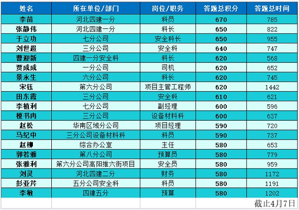 本次活動(dòng)是繼“復(fù)工安全培訓(xùn)第一課”后,公司著眼網(wǎng)絡(luò)平臺(tái)優(yōu)勢(shì)的又一次運(yùn)用。安全管理部和宣傳部結(jié)合職工使用微信較普遍的實(shí)際,聯(lián)合推出了微信答題活動(dòng),以多樣化的方式開(kāi)展培訓(xùn)教育,提高了“安全培訓(xùn)教育月”活動(dòng)實(shí)效。(安全管理部)