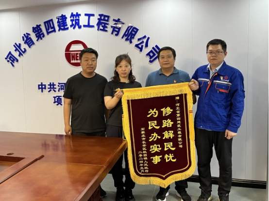 “感謝河北四建對鎮(zhèn)政府工作的大力支持,解決了桃園鎮(zhèn)學府聯(lián)合社區(qū)前進村與滹沱河河堤路之間的道路損壞嚴重的大問題……”6月5日下午,石家莊市長安區(qū)桃園鎮(zhèn)人民政府代表琚紅珊帶著濃濃的謝意專程來到九分公司中共河北省委黨校項目部,將“為民辦實事 修路解民憂”的錦旗交到分公司黨總支書記、經(jīng)理劉喜良手里,對河北四建公司的大力支持和幫助表示誠摯感謝。