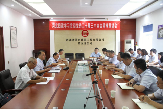 董富強(qiáng)強(qiáng)調(diào),要全力以赴抓好全會(huì)精神的學(xué)習(xí)貫徹工作,一要篤信提站位,充分認(rèn)識(shí)全會(huì)的重大意義,把思想和行動(dòng)統(tǒng)一到黨中央決策部署上來(lái),要堅(jiān)持和落實(shí)“兩個(gè)毫不動(dòng)搖”,以實(shí)際行動(dòng)捍衛(wèi)“兩個(gè)確立”,堅(jiān)決做到“兩個(gè)維護(hù)”。二要篤學(xué)悟精神,采取多種形式抓好全會(huì)精神的學(xué)習(xí),加強(qiáng)統(tǒng)籌協(xié)調(diào)和督促指導(dǎo),做到學(xué)深悟透、融會(huì)貫通。三要篤行齊奮進(jìn),以全會(huì)精神為指引,增強(qiáng)機(jī)遇意識(shí),堅(jiān)定信心,全力做好市場(chǎng)開發(fā)、風(fēng)險(xiǎn)防控、項(xiàng)目管理等工作,推進(jìn)公司發(fā)展邁出新步伐,為奮力譜寫中國(guó)式現(xiàn)代化建設(shè)河北篇章作出河北四建新貢獻(xiàn)。
