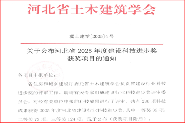 7月3日,河北省土木建筑學(xué)會公布了2025年度河北省建設(shè)科技進(jìn)步獎名單。公司憑借扎實的科技創(chuàng)新與技術(shù)攻關(guān)能力,一舉斬獲16項科技成果獎項,其中,一等獎1項、二等獎4項、三等獎11項。