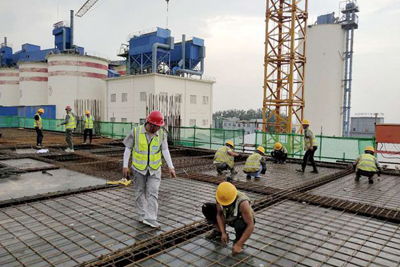 同心協(xié)力完成節(jié)點(diǎn)任務(wù)。水泥配料站、水泥粉磨是業(yè)主目前關(guān)注重點(diǎn),要求8月3日前筒倉滑模到14.4米庫底板、水泥粉磨11.5米平面混凝土澆筑完,為安裝輥壓機(jī)、減速機(jī)等設(shè)備創(chuàng)造條件。時(shí)間緊任務(wù)急,持續(xù)的降雨反而更加激發(fā)了項(xiàng)目部的斗志,水泥配料站筒倉施工采用滑模工藝,滑模平臺(tái)上鋼筋綁扎、預(yù)留預(yù)埋安裝、混凝土澆筑、庫壁壓面等各道工序相互配合,工種銜接默契。雖然雨水經(jīng)常光顧,但是大家沒有絲毫懈怠,熱火朝天的干勁兒始終未減。水泥粉磨車間樓層高、場地狹窄給施工造成困難,項(xiàng)目部采用白天作業(yè)面施工,晚上班組倒運(yùn)材料等方法,保證施工進(jìn)度。截至7月30日上午,水泥配料站14米庫底板、水泥磨11.5米平面、水泥及礦粉儲(chǔ)存基礎(chǔ)筏板均已澆筑完混凝土,為項(xiàng)目下一步施工創(chuàng)造了積極有利條件。(三分公司)