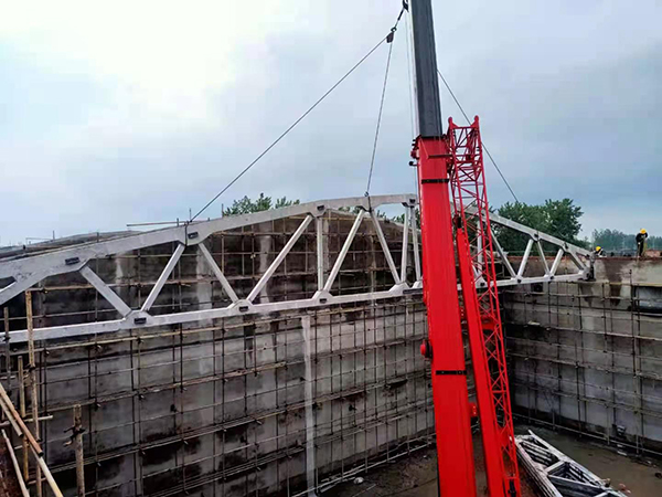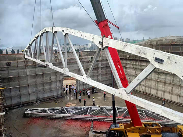 5#平房倉的倉頂由16榀預(yù)應(yīng)力屋架梁和400塊屋面板構(gòu)成,每榀預(yù)應(yīng)力屋架梁重14.24噸,長度達(dá)30米,平房倉的工作重點(diǎn)是預(yù)應(yīng)力屋架梁的制作及吊裝,工作難度大、技術(shù)含量高,項(xiàng)目部緊抓屋架梁預(yù)制這道關(guān)鍵工序,提前謀劃,做好準(zhǔn)備。