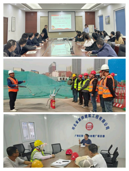 排查隱患,防患于未然。五分公司組織機關與項目部進行了全面深入的火災隱患大排查。機關重點針對辦公室、電動車棚、食堂和職工宿舍等區(qū)域展開細致排查,并及時整改發(fā)現(xiàn)的隱患。11月12日,廣陽項目部組織全體施工人員開展學習與消防演練活動,特別針對塔司、電梯司機、信號工等特殊工種作業(yè)人員進行了有針對性的培訓,結合施工現(xiàn)場實際情況詳細解讀消防法規(guī)的核心要點,深入剖析因電氣故障、明火使用不當?shù)纫l(fā)火災的典型案例,著重強調塔吊、施工升降機等設備運行區(qū)域及操作室的防火要點以及消防器材的正確配備、使用和日常維護方法。此外,因當?shù)丨h(huán)保政策停工的藁城小學、定興糧庫項目,安排專人值守,定期加強對消防設施的日常檢查,并詳細記錄各類消防設施的狀態(tài)信息,如滅火器壓力是否正常等,確保停工期間消防設施的完好有效,將火災隱患扼殺在萌芽狀態(tài)。(五分公司)