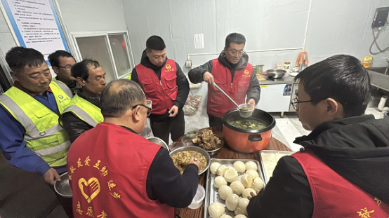 項(xiàng)目務(wù)工人員大多是當(dāng)?shù)卮迕瘢x家較近的務(wù)工人員常自帶飯菜加熱食用。然而,天氣寒冷或加班時(shí),飯菜容易變涼。考慮到這一點(diǎn),項(xiàng)目部志愿者團(tuán)隊(duì)聯(lián)合食堂師傅,為工人們準(zhǔn)備了熱餐器具,并額外提供免費(fèi)雞蛋湯,讓大家在繁忙的施工之余,感受到家一般的溫暖。這一舉措不僅讓工友們吃得安心、干得舒心,更激發(fā)了大家的工作熱情,為施工生產(chǎn)注入了強(qiáng)勁動(dòng)力。
